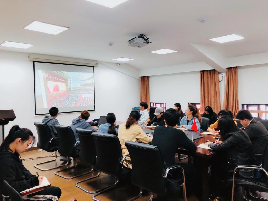 4月30日上午,学院团总支书记李文阁、研究生辅导员孙一可、18级辅导员丁浩及学院青年员工代表在休闲学院3308会议室共同观看了纪念五四运动一百周年大会。中共中央总书记、国家主席、中央军委主席习近平出席大会并发表重要讲话。